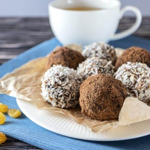 - Du kannst auch wahlweise die Energy-Balls in Kokosraspeln wälzen.