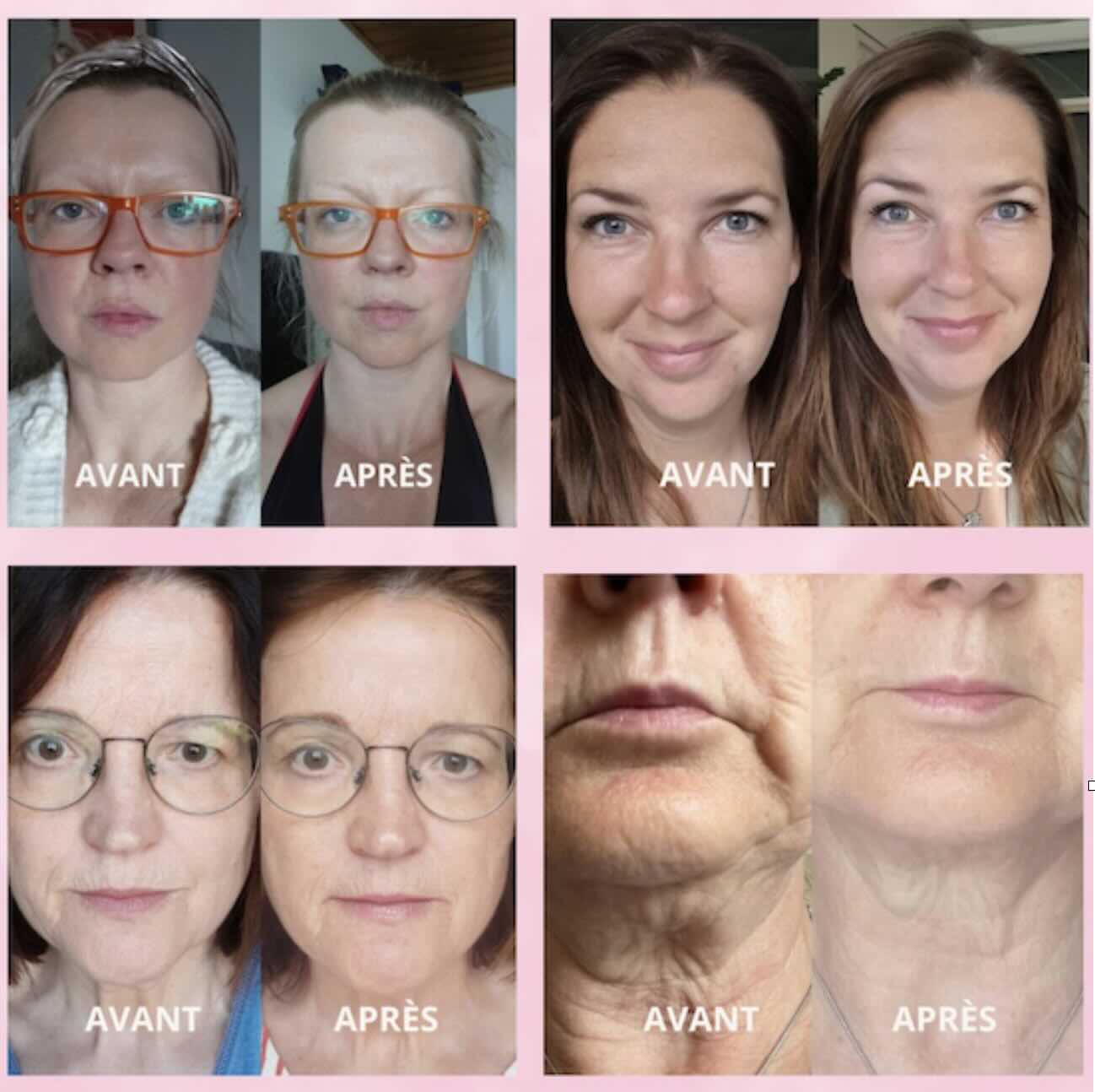 « Les sillons nasogéniens qui me donnaient un air fatigué en permanence se sont nettement adoucis. Les rides horizontales de mon front sont moins creusées. Ma fille m’a dit : « Maman, tu as rajeuni de 10 ans. » C’est la plus belle chose qu’on m’ait dite depuis longtemps. »