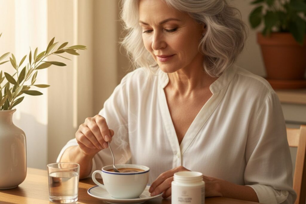 « Le secret ? Une simple poudre de collagène que je mets dans mon café chaque matin. C’est tout. Trois minutes de rituel qui ont transformé non seulement ma peau, mais toute ma vie. »