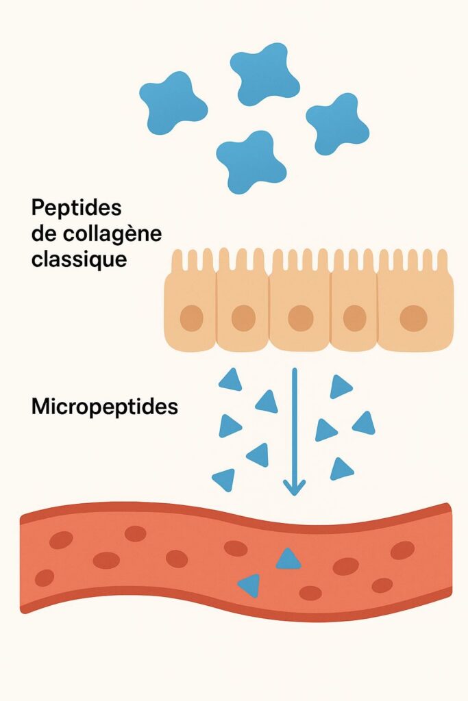2. La facilité d’absorption « Le collagène hydrolysé est pré-digéré, en quelque sorte. Les peptides sont suffisamment petits pour être absorbés directement dans le sang. C’est beaucoup plus efficace que d’essayer d’obtenir du collagène à partir d’aliments entiers. »