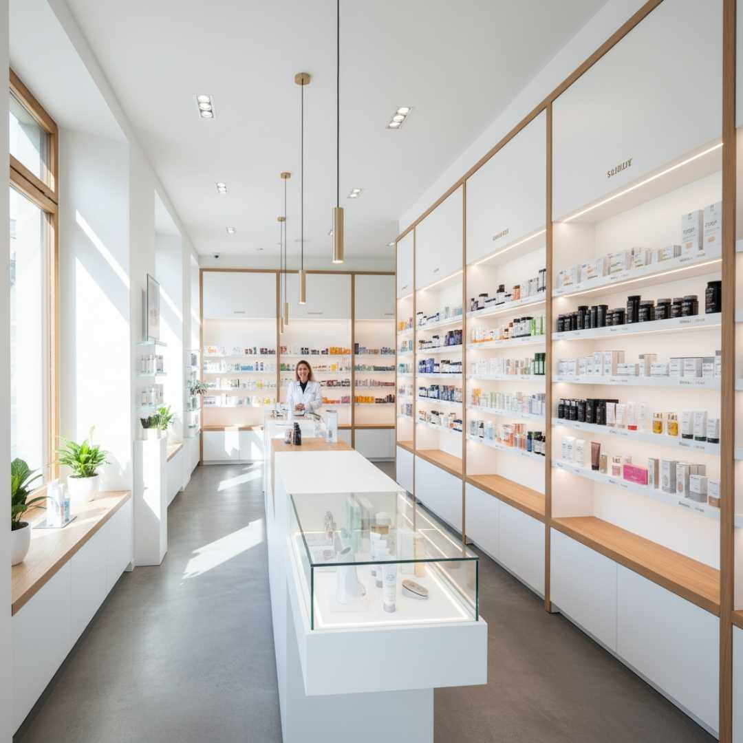Pas de présentoirs criards. Pas de promotions « 2+1 gratuit » sur des produits douteux. Juste un espace épuré, lumineux, avec des étagères soigneusement organisées.