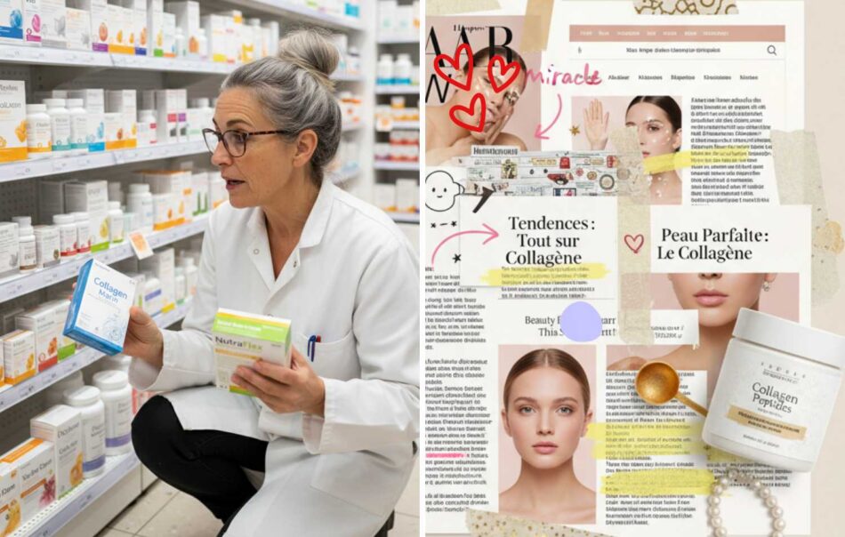« Regardez. Les marques ont compris qu’il y avait un marché énorme. Des millions de femmes qui souffrent de douleurs articulaires, qui veulent retrouver une belle peau. Alors elles mettent « collagène » sur l’étiquette et elles vendent. »