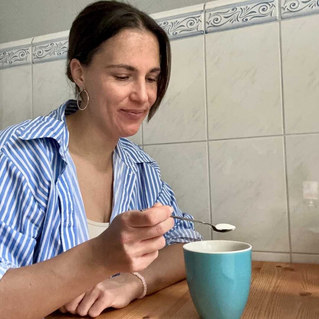 Ce matin, j’ai tout de même commencé ma première journée avec la « variante originale » et j’ai adouci mon café.