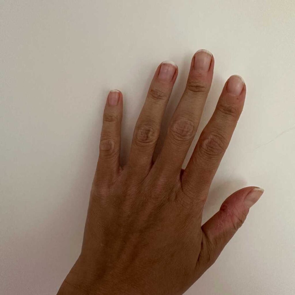 - Mes ongles ont vraiment pris une jolie teinte rosée et sont bien plus résistants. Le geste lors de la pédicure est vraiment différent. L’aspect un peu laiteux ne m’a jamais dérangée, mais il faut avouer que comme ça, c’est plus joli.
