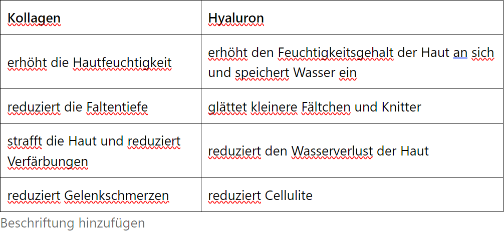 Die Antwort auf die Frage ergibt sich im Prinzip bereits aus dem vorangehenden Kapitel. Kollagen und Hyaluron haben zwei unterschiedliche Effekte, die sich gegenseitig ergänzen.