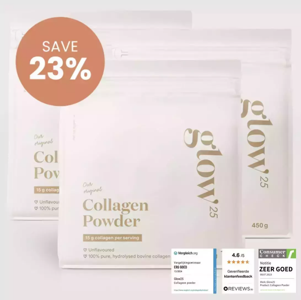 Profiteer nu van 23% korting op Glow25 Collageen Plus, exclusief voor lezers van dit artikel.