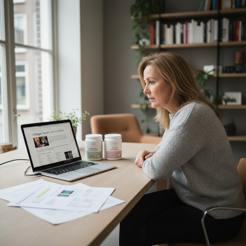 “Er zijn letterlijk honderden collageenproducten op de markt,” vertelt Mirjam. “Poeders, capsules, drankjes, gummies… Allemaal beloven ze wonderen. Maar welke werkt écht? En welke is gewoon dure marketing?”