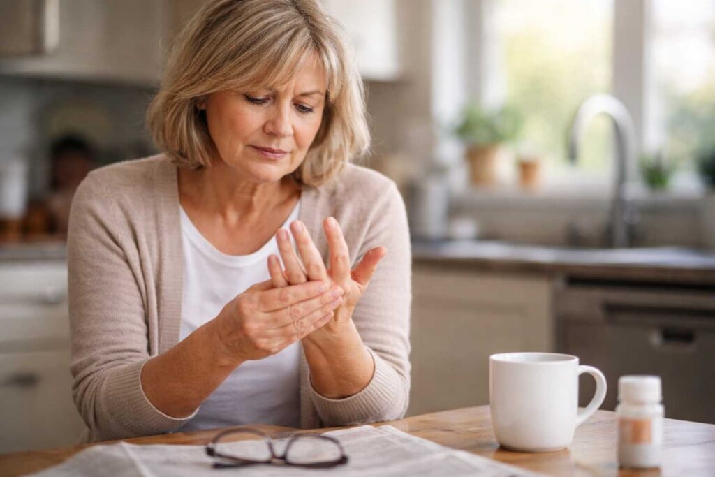 Het begon onschuldig. Een trekkend gevoel in de vingers. Een beetje stijf in de ochtend. “Dat is gewoon ouderdom,” dacht ze bij zichzelf. “Het wordt wel weer beter.”