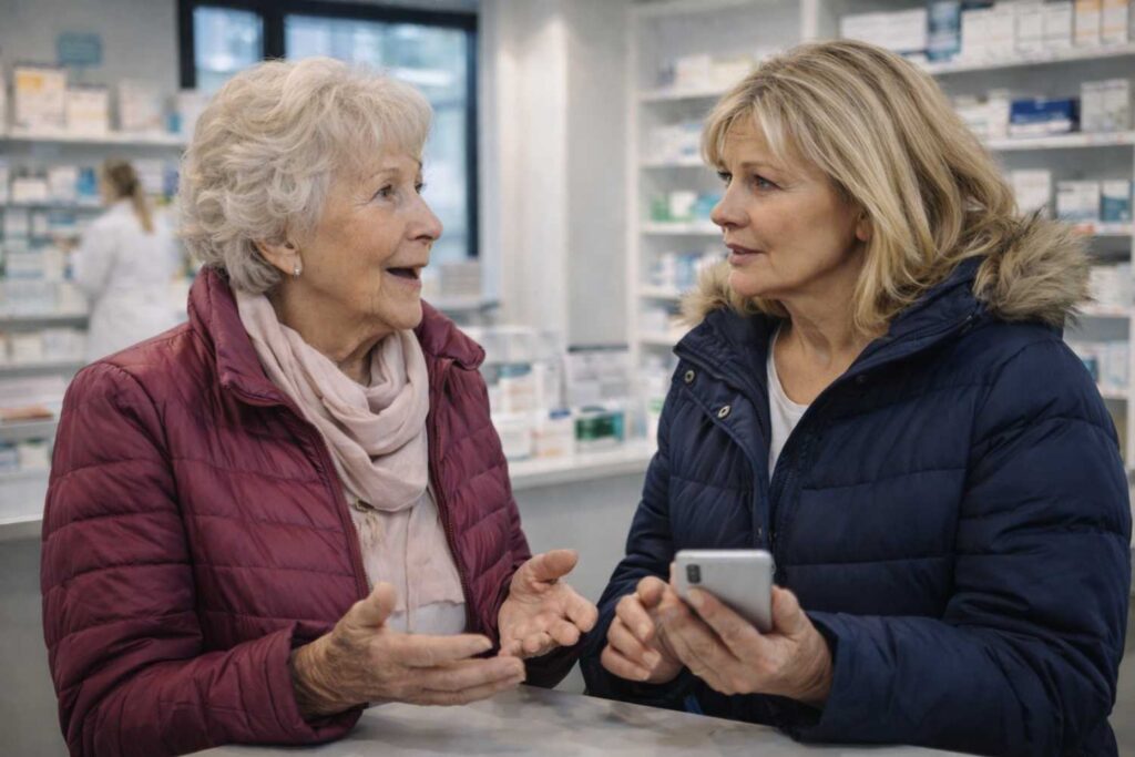 Naast haar bij de toonbank stond een oudere vrouw – eind 70, schatte Margit – die een praatje maakte met de apotheker.